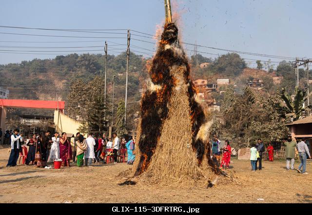 GLIX – Assamese people light a traditional ‘Meji’ bonfire while celebrating the Magh Bihu festival in Guwahati on Wednesday, January 14, 2026. The Meji, constructed from bamboo and straw, is ceremonially burned as part of Bhogali Bihu to mark the harvest season and communal festivities.