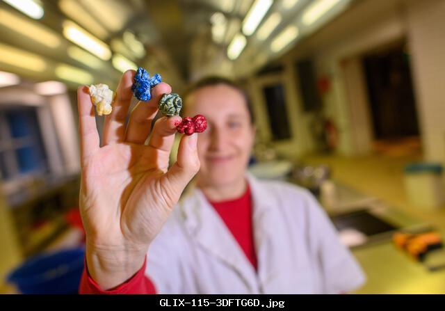 GLIX – Bernburg, Germany. 14th Jan, 2026. Franziska Kehling, a student at Anhalt University of Applied Sciences, shows colored popcorn that has been dyed with microalgae in the university’s teaching kitchen. In its laboratories, Anhalt University of Applied Sciences conducts research into algae and their use in the food sector. At the Green Week in Berlin, it is now presenting the products it has developed. Visitors to the fair will be able to try popcorn that has been dyed green, red or blue with algae-based dyes.