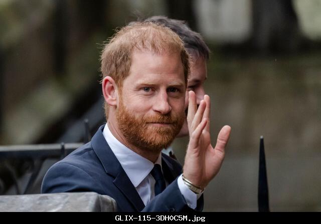 GLIX – Prince Harry, the Duke of Sussex, arrives at the High Court on the opening day their civil court case. Seven claimants – Prince Harry, Sir Elton John, David Furnish, Baroness Doreen Lawrence, Sadie Frost Law, Elizabeth Hurley and Sir Simon Hughes