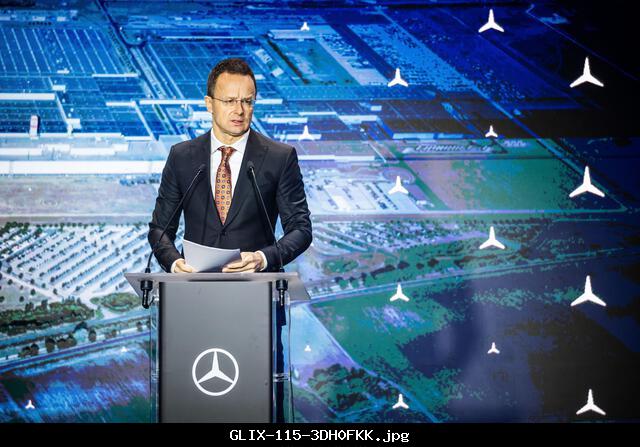 GLIX – Kecskemet, Hungary. 19th Jan, 2026. Peter Szijjarto, Foreign Minister of Hungary, speaks at the official launch of the new Mercedes-Benz GLB. The compact SUV will be produced at the Kecskemet plant in Hungary after production of the current model series in Mexico has been discontinued.