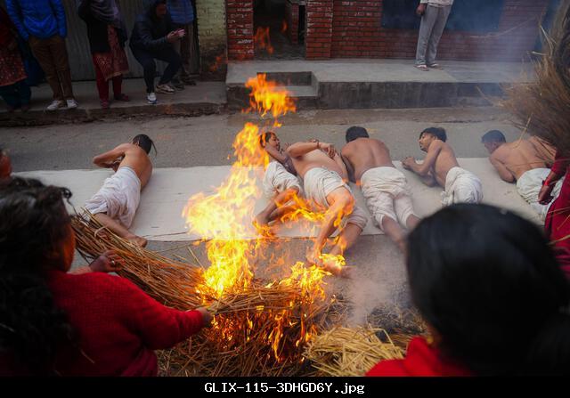 GLIX – Hindu devotees offer prayers by crawling on the ground during the month-long Swasthani Brata Katha festival in Bhaktapur. The month-long festival, dedicated to God Madhavnarayan and Goddess Swasthani, features the recitation of folk tales about miraculous feats performed by them in many Hindu households.
