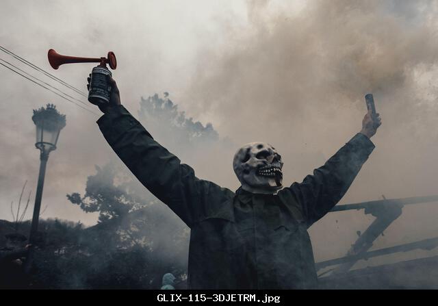 GLIX – Ituren, Spain. 26th Jan, 2026. Revelers wearing grotesque masks perform provocative satirical scenes in contrast to the order symbolized by the ”Joaldunak’s’ during the carnival of Zubieta and Ituren