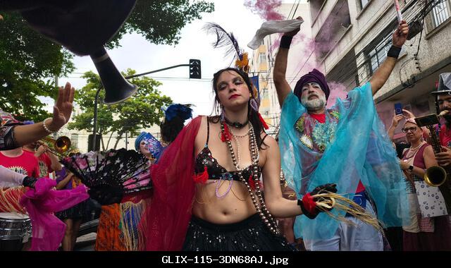 GLIX – The Klezmer Bloc’s carnival procession was accompanied by a A group of musicians with original arrangements of freilachs, bulgars, and zhoks, blending marchinhas, frevos, and arrastapés with the klezmer style-an instrumental folk style originating from the Ashkenazi Jewish communities of Eastern Europe, known for its cheerful and festive sound, traditionally present in celebrations, weddings, and religious festivals.
