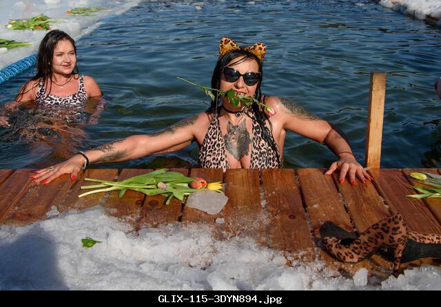 GLIX – Vilnius, Lithuania. 08th Mar, 2026. Members of a winter swimming club bathe in an ice hole while celebrating International Women’s Day on a frozen lake on the outskirts of Vilnius. Members of a winter swimming club celebrated International Women’s Day on a frozen lake on the outskirts of Vilnius, Lithuania.